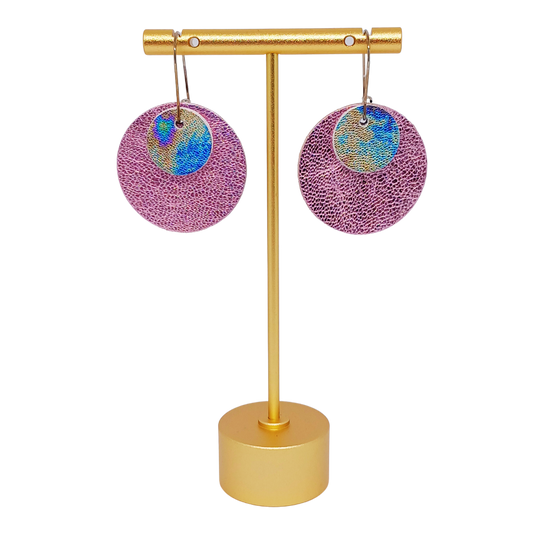 Full Circle Earrings | Metallic Soft Pink & Petrol