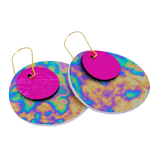 Full Circle Earrings | Petrol & Metallic Shocking Pink