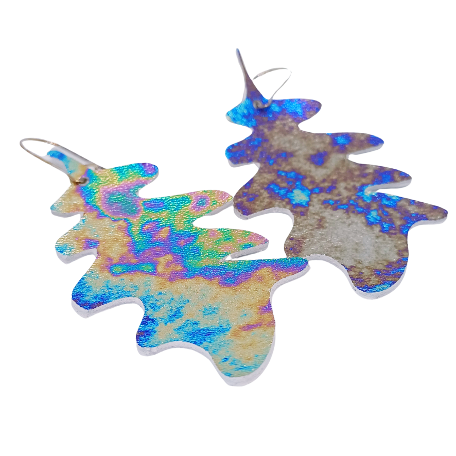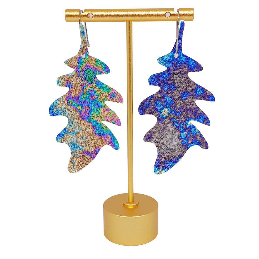Large Oak Leaf Earring | Petrol Effect Luxury Leather